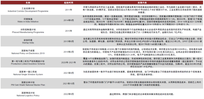 莫迪上台之后非常重视发展制造业。以手机和电子元件行业为例,莫迪政府推出了一系列激励措施,通过奖惩结合的方式推动外资在印度投资设厂。例如“阶段制造业促进项目”方案,通过渐进性的差额关税推动手机及配件厂商在印投资生产。根据这个政策,不愿意在印度投资设厂的手机品牌需要交纳超额关税作为进场费。再比如“生产关联奖励计划”,对于实施本地化生产提升印度产能的企业,政府提供4%~6%的奖励措施。[74]