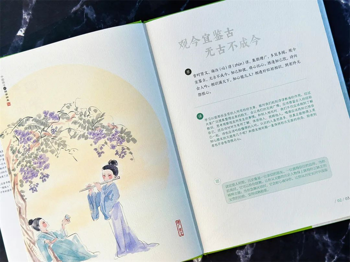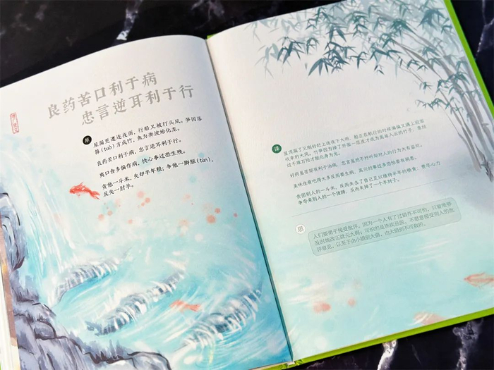 每一个精心筛选的金句、典故都不长。孩子读一页书,就能懂得一个受用终身的道理。