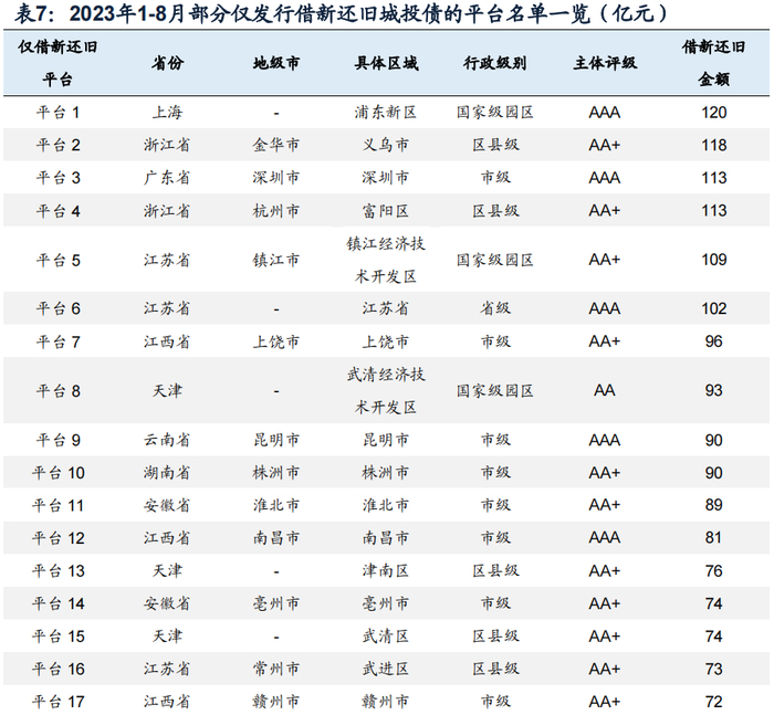 三、哪些区县和平台2023年发债仅用于借新还旧?