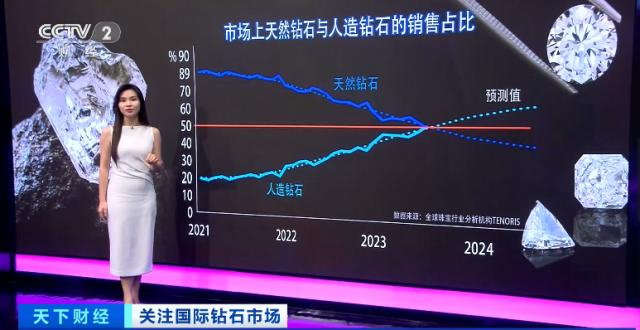 比利时钻石交易所联合会理事 弗莱施特格:两年前,人造钻石比天然钻石便宜40%,到后来便宜60%,到了今年则便宜70%、80%,甚至99%。或许将来,你在超市买肥皂也会送你一颗钻石。