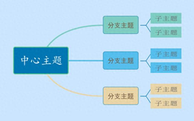 首先确定一个中心主题,根据隶属关系和从属关系将中心主题分化成若干个分支主题,各个分支主题又可以各自分化成子主题,从而不断拓展延伸。