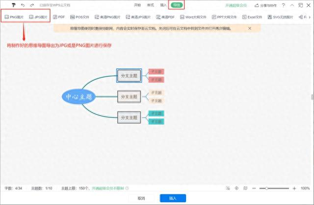 在完成思维导图的编辑后,点击导出,将思维导图以PNG或JPG图片的形式进行保存,这样思维导图的绘制工作便完成了。