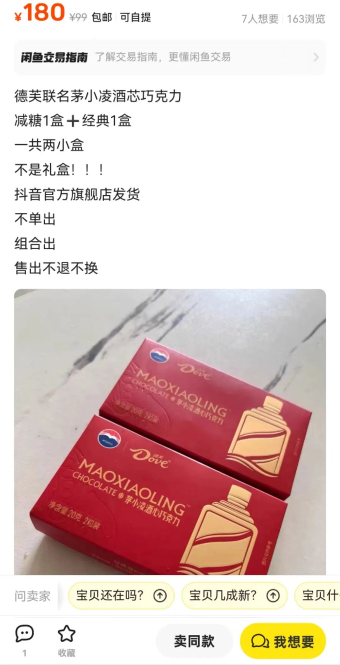 有网友在二手平台高价转售买到的茅小凌酒心巧克力