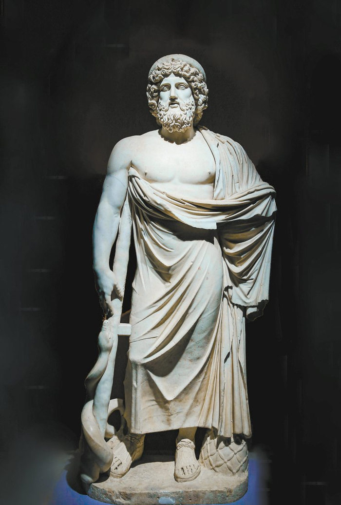 回过来看一下雕像《埃斯库勒庇俄斯》,医药之神表情上的深邃与自信其实就不再有所谓永恒的意味了,因为他自己也有不保自身的时候。同时,我们也可以强调,神界与人世间的界限真是规约得太苛严了。想一想,他原本就是神(太阳神)与人(克洛尼丝)的结合产物,与真正的神毕竟还是有区别的。这个“神二代”大概只算是曾经的一个短暂例外,可以让人死而复活,却无法永远这样做下去。