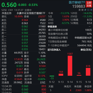 9月19日午盘,A股最大的医疗器械ETF整体下跌0.53%。受骨科运动医学等高值耗材将被纳入第四批国家组织耗材集中带量采购影响,成分股中骨科纷纷飘红,大博医疗大涨10%、威高骨科大涨4%。下跌方面,福瑞股份跌超6%、爱美客跌超4%、天智航跌超3%。