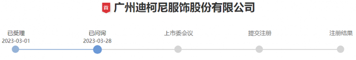 广州迪柯尼服饰股份有限公司(简称“迪柯尼”)最早在去年7月向证监会提及上市材料并获受理,冲刺深交所主板,今年1月收到反馈意见。此后由于全面注册制改革,公司平移到深交所重新申报,于今年3月1日获受理,3月28日收到首轮问询。