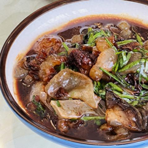 作为金山嘴渔村非常经典和具有代表性的渔家菜,韭菜炒海蜇因为用的是新鲜海蜇,所以一年只有几个月能品尝到。海蜇营养价值非常丰富,主要以胶原蛋白和维生素为主,深受大家欢迎。