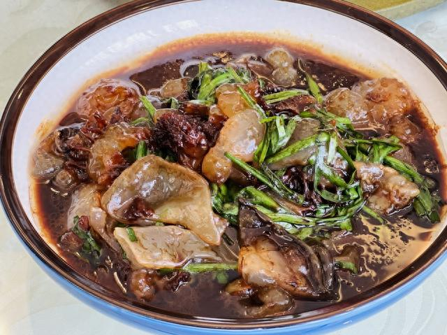 除了韭菜炒海蜇,还有一道用新鲜海蜇做的海蜇汤也很合金山人的口味。把海蜇切碎后加入榨菜丝、大蒜叶,熬煮成的海蜇汤,喝上一口,鲜美无比。