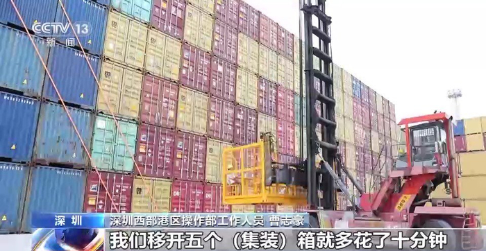 深圳西部港区操作部工作人员 曹志豪:比如我们要发最底层的箱子出来,上面压了5个集装箱,我们得把这5个集装箱全部移开。移开一个集装箱打比方花2分钟的话,移开5个箱就多花了10分钟。