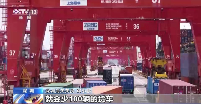 深圳海关关员 邓小鹏:一艘驳船如果是满载的话,接近100个集装箱,相当于去枢纽港口的高速公路上就会少100辆的货车,对整个区域的交通会是非常大的改善。