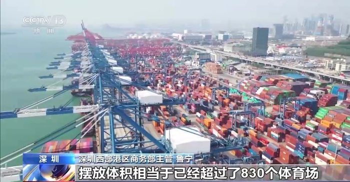 深圳西部港区商务部主管 鲁宁:从组合港开通,我们操作第一个柜以来,累计已经做了45万标箱,摆放体积相当于已经超过了830个体育场。组合港的实施,为我们与珠三角的客户搭建了更加便捷高效的物流大通道,促进了整个湾区的物流要素的高效流通。