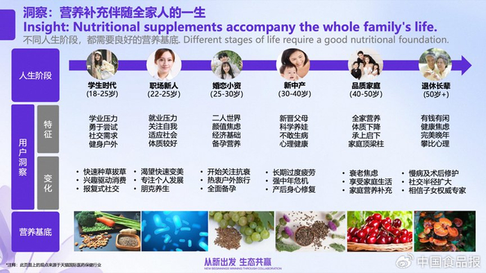 我国年龄中位数不断增加,衰老带来的健康问题,已成为越来越严重的公共卫生问题之一。但人们不再一味追求延长预期寿命,而是越来越重视“健康衰老”,近53.2%的人群在26-35岁期间就开始注重抗老,他们需要各种维度的可靠营养支持。