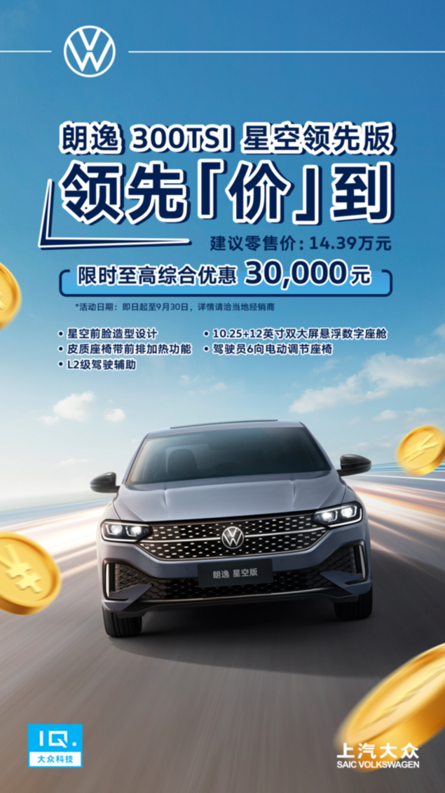 优惠3万元 燃油车销冠朗逸2024款焕新上市