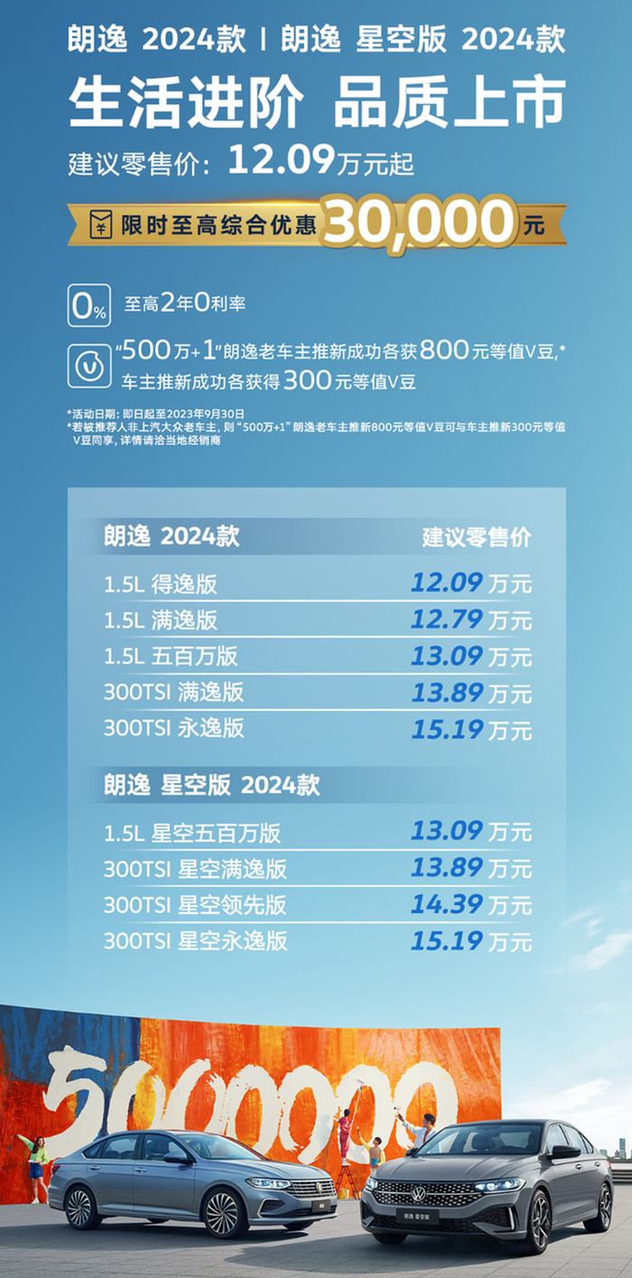站在朗逸家族500万+用户的基数上,朗逸2024款对于中国消费者的用车需求有着精准洞察,在产品配置及定价上,突破了消费者对于A级轿车的固有认知,给予消费者最具性价比之选。