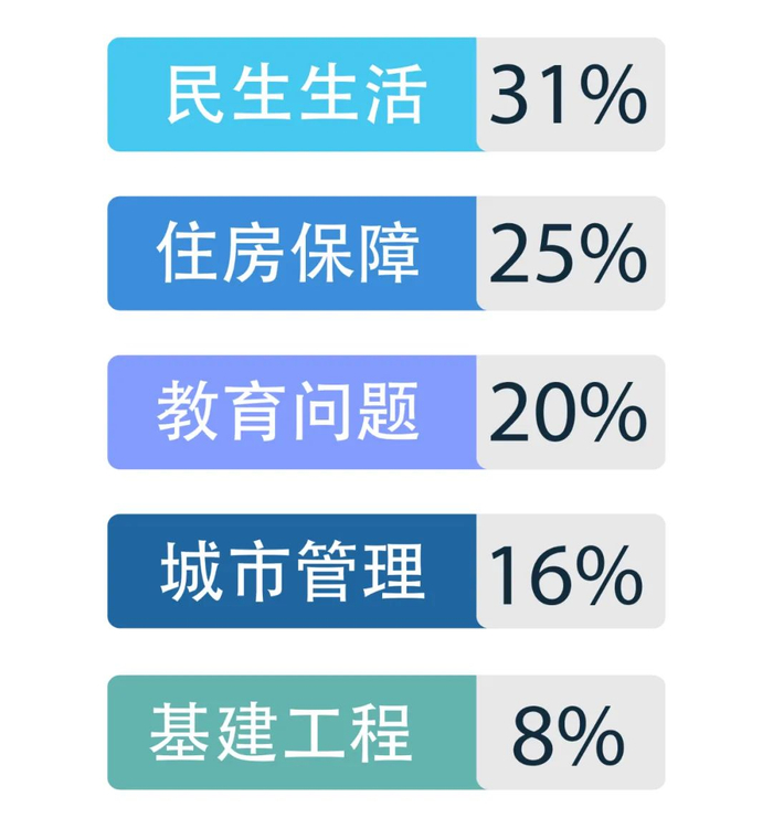9月12日—9月18日,洛阳网“百姓呼声”平台接到的有效诉求中,民生生活问题最多,占总量的31%,排在第二的是住房保障,占25%,教育问题占20%,城市管理占16%,基建工程占8%。