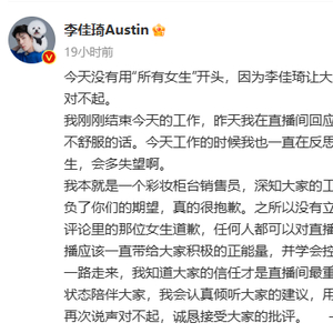 11日凌晨,李佳琦发文致歉。当日晚,他现身直播间落泪道歉,再次回应花西子眉笔风波。
