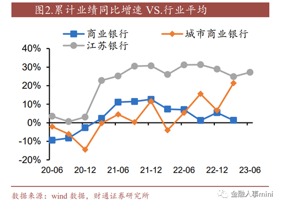 和同业相比,江苏银行的业绩增速好于城商行整体水平。