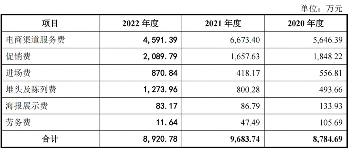 在推广服务费中,阿宽食品每年还要支付数千万的电商渠道服务费以及促销费,以扩大淘宝、京东等电商平台上自营店铺的销售规模。