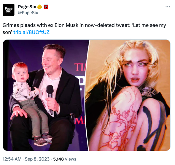 10宝是马斯克和前女友(加拿大女歌手Grimes)所生。