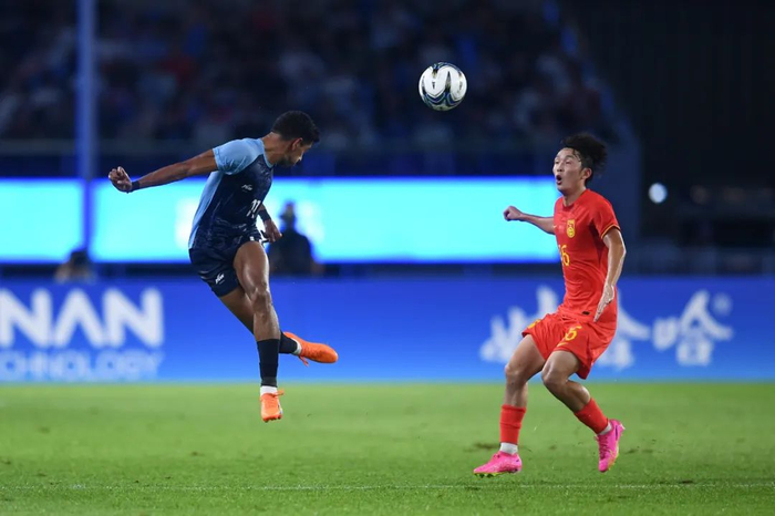 在19日晚进行的杭州亚运会男足小组赛首轮中,国足亚运队VS印度。图源:IC photo