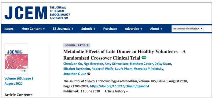 ① Chenjuan Gu,et al.Metabolic Effects of Late Dinner in Healthy Volunteers – A Randomized Crossover Clinical Trial.JCEM.2020.