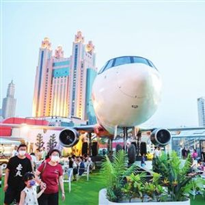 在这个“全天候”休闲场景中,屋顶是一个重要组成部分。“在改造原有建筑时,我们就将屋顶设计成人可以在上面活动。A区顶楼放置了一架大飞机,打造出露营、餐酒的场景,C区屋顶是运动公园,把户外空间都利用起来了。”郑峥举例说,“晚上天气好的时候,可以先去屋顶吃个烧烤、喝点儿啤酒,接下来再去看一场演出,场景就这样串联起来。”