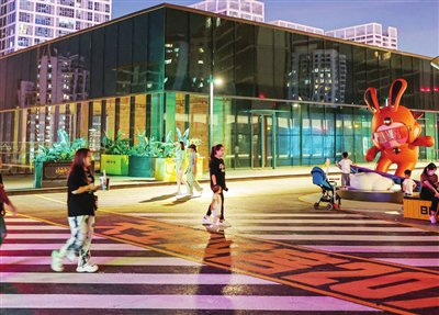 家住全运村的孙女士就将这里作为新的“遛娃”场地。“孩子可以在屋顶的公园骑车,比马路上安全。楼下就是吃饭、购物的地方,也有儿童乐园,逛一整天都没有问题。”她说。