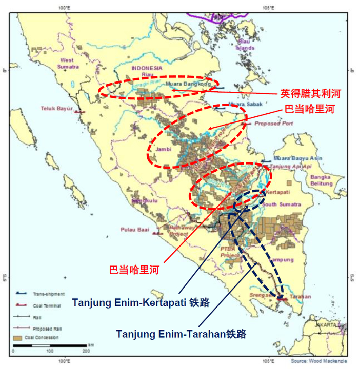 图表21:苏门答腊岛煤炭矿区及主要河流