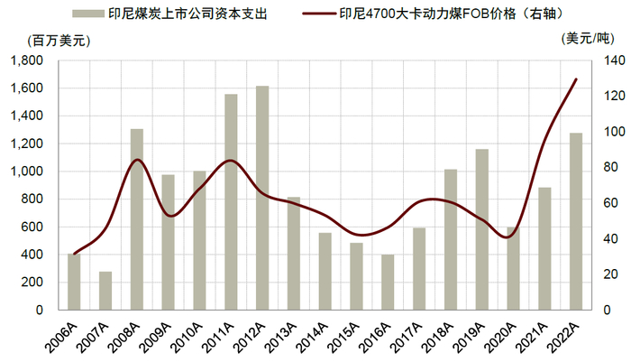 图表18:印尼上市煤企资本支出和历史煤价走势