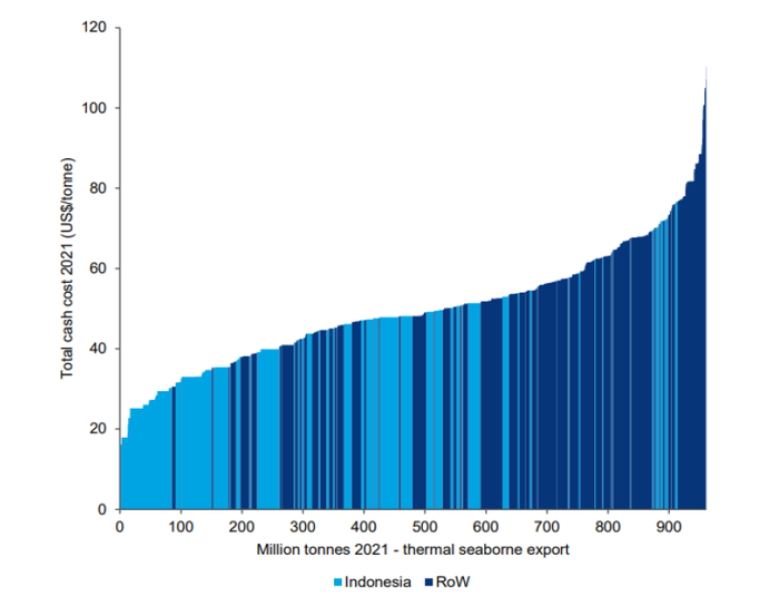 图表30:印尼在动力煤出口成本曲线上与全球其他地区相比具备一定优势
