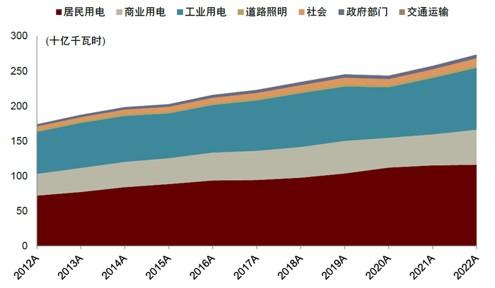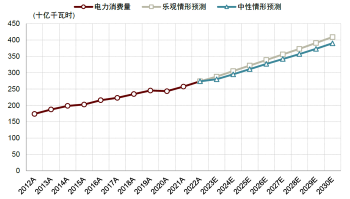 注:2012-2022年历史数据为印尼能矿部统计的电力销量,2023-2030预测数据为印尼国家电力公司预计的电力消费量
