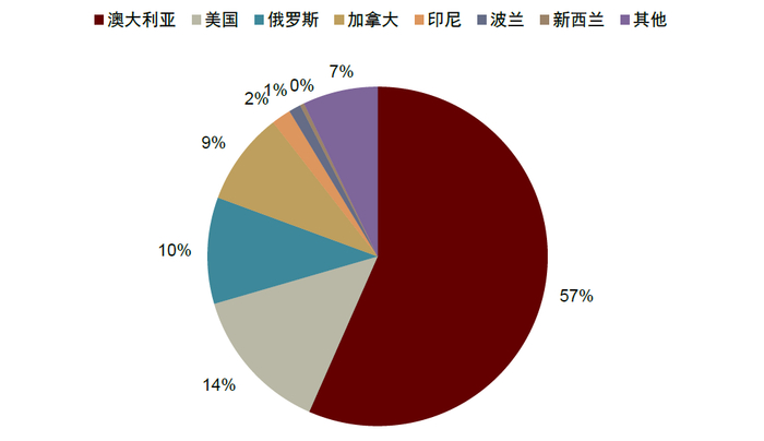 图表25:2021年全球炼焦煤出口分布显示,印尼炼焦煤出口较少