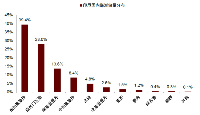 印尼煤炭资源分布相对集中,主要坐落于加里曼丹岛和苏门答腊岛。从资源地域分布来看,印尼煤炭资源的分布也比较集中。印尼能矿部数据显示,截至2022年,东加里曼丹、南苏门答腊、南加里曼丹三个省份的煤炭储量占印尼全国储量的80%以上。
