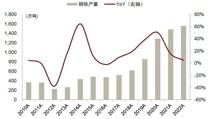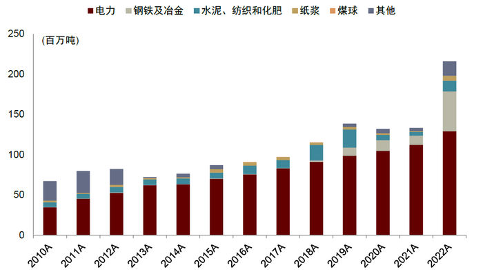 地产基建有望拉动钢铁水泥等传统原料耗煤需求。过去5年,印尼钢铁及冶金行业用煤增加明显。根据世界钢铁协会,内需增长驱动印尼钢铁产量由2017年的618万吨增加至2022年的1,557万吨,5年CAGR达到25%。往前看,我们预计随着印尼迁都加里曼丹[11],该国地产基建对钢铁的需求有望进一步增长,同时水泥需求也有望因此提振。