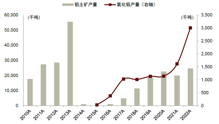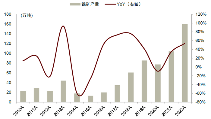 原矿出口限制有望拉动当地冶炼耗煤需求。随着印尼红土镍矿开发加快,USGS数据统计当地镍矿产量由2017年的34.5万吨增加至2022年的160万吨,5年CAGR达到36%,占全球总产量的比重由2017年的10%提升至2022年的48%。此外,通过加强铝产业链下游的延伸,Woodmac数据显示印尼氧化铝产量也由2015年的3万吨提升至2022年300万吨。往前看,在印尼限制原矿出口[10]、向高附加值产业链下游延伸的背景下,我们认为当地矿业行业的冶炼加工需求有望保持较快的扩张趋势。