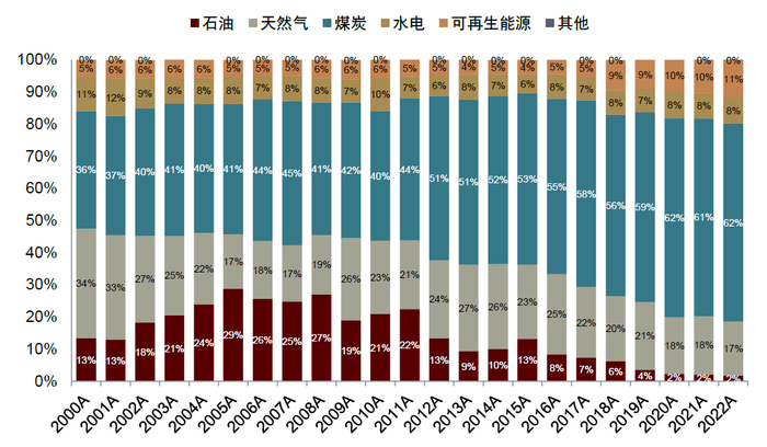 图表7:从2000-2022年的印尼一次能源消费增长来看,煤炭贡献了超过60%的增量