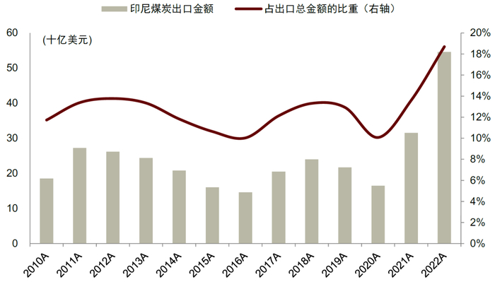需求持续增长下,供给增量不足,以及政策、出口产业结构的变化或掣肘印尼煤炭出口增长。一方面,印尼煤企在积极应对绿色转型问题,对煤炭本业的投资相对谨慎,除了少数企业仍有煤炭扩张性投资外,多数企业投资主要用于维护性支出、运输基建支出及业务转型方面的支出。另一方面,资源税金等政策的变化、煤价双轨制等问题可能也会扰动印尼煤炭投资信心。此外,我们认为由单纯的资源出口国向下游高附加值产品出口转变也将优化印尼出口结构,那么其出口煤炭创汇的重要性可能下滑。