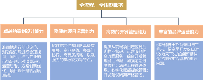 经过十余年的发展,招商蛇口凭借“开发建设、运营管理、资金运作、品牌运营”等方面的出色能力,通过成立专业化代建部门深度参与城市建设,为客户提供全流程、全周期服务。
