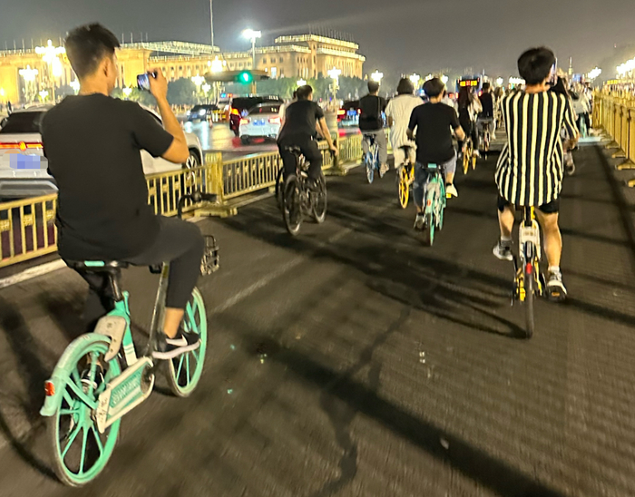 夜色中迎着微风骑行,看向镜头莞尔一笑……一段段经过剪辑的“夜骑”视频在网上引发讨论。