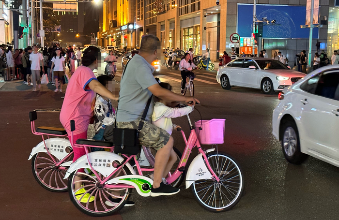 在南河沿大街上,也有店铺在暗中出租自行车。一个商家把记者带到附近一处安静地点,掀开一个不透明的防尘罩,两辆自行车就藏在下面。不远处的另一家店铺老板则直言道:“这两天正查呢,我的车都搁库房了。”如果想租亲子车得提前预约。店门口摆着几辆单人自行车,也是用于出租的。“能带小孩的50元两小时,单人的是30元。”