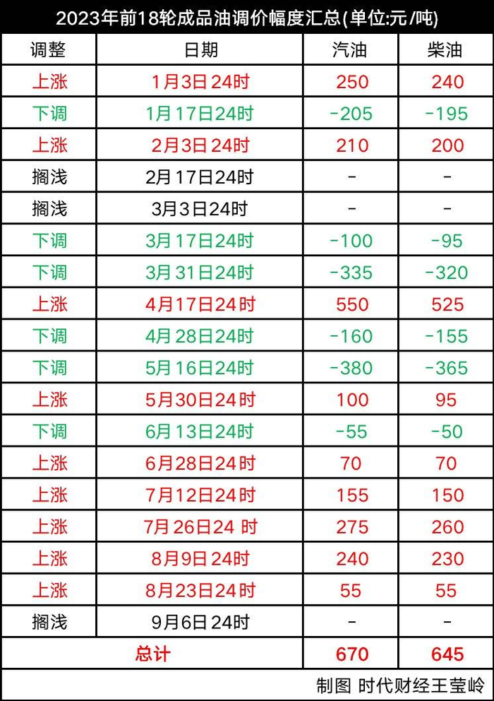时代财经梳理发现,今年以来的前18轮调价为“9涨6跌3搁浅”格局,综合后,年内汽油已上调670元/吨,柴油上调645元/吨。折算升价后,汽油价格已上调0.49元/升,柴油价格已上调0.56元/升,叠加本次,比起年初,加满一箱50L的油箱需要多花39元~44元。