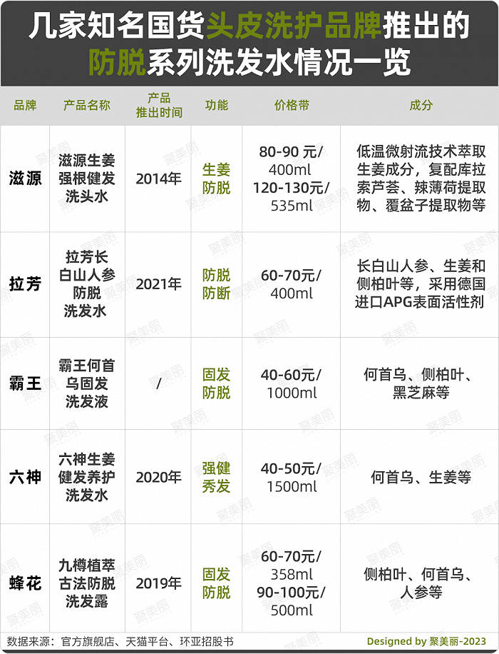 在此情况下,绝大部分头皮洗护品牌均推出带有“防脱”、“育发”等功效的产品,且该赛道不断涌入新的竞争者。