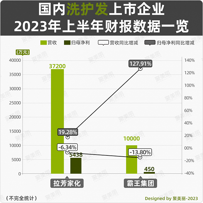 据国内上市公司2023年上半年财报显示,几家经典品牌生产商利润方面都收获了增长。其中,拉芳家化归母净利为5438.45万元,同比上涨19.28%;霸王归母净利为450万元,同比增长127.91%。