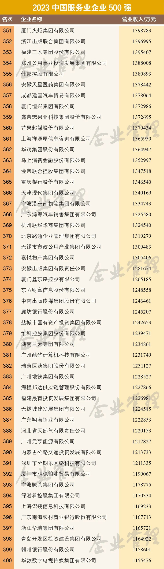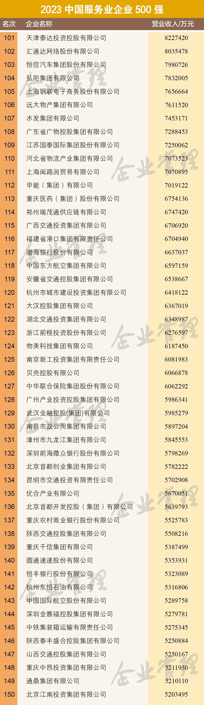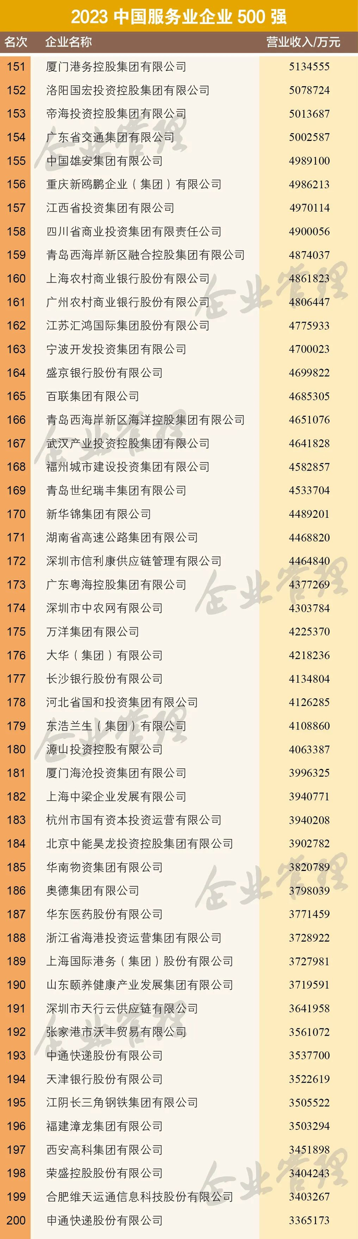 2023年9月20日,中国企业联合会、中国企业家协会连续第19次发布中国服务业企业500强名单。