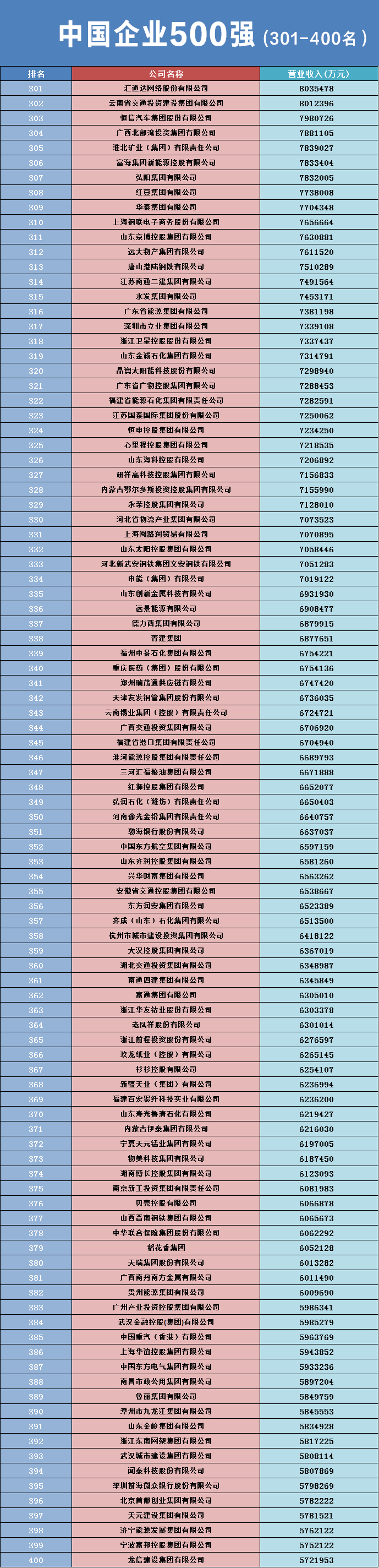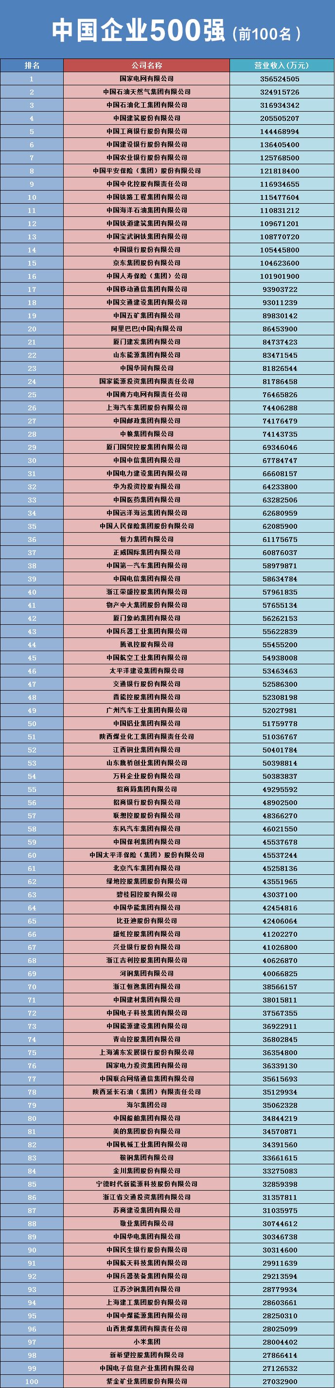 名单显示,国家电网以3.57万亿营收位列第一,这也是国家电网连续第三年夺冠。中国石油以3.25万亿营收排名第二,中国石化以3.17万亿营收排名第三。