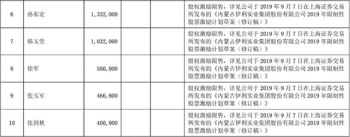持有伊利集团股份的自然人和包括孙东宏(1994年加入伊利,自2017年起为该公司助理总裁)、韩玉堂(伊利集团副总裁)、徐军(伊利集团奶粉事业部总经理)、张玉军(伊利集团总裁助理兼伊利液态奶事业部总经理)、张剑秋(伊利集团执行总裁)。