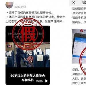 除了享受票价5折是假的,网传所谓的老年人“8大特权”也是拼凑编造而成,大部分是根据铁路方面推出的重点旅客服务内容进行的演绎,相关配图存在误导。