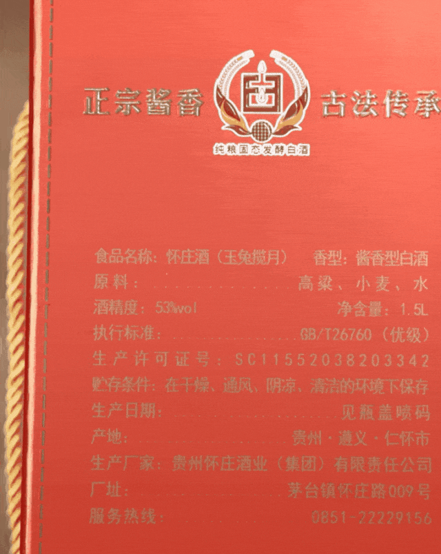 怀庄玉兔揽月执行标准一栏标注GB/T26760(优级),是国家规定的用固态法酿造的酱香型白酒执行标准,在品质上,优级>一级>二级。