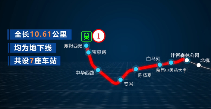 西安地铁1号线三期工程是西安城市轨道交通骨干线1号线的延伸,起于1号线二期沣河森林公园站,终至咸阳西站,线路全长10.61公里,均为地下线,设7座车站。线路建成后对加快西安—咸阳一体化发展进程,统筹推进西安都市圈建设,促进西安与周边城市协同发展具有重要意义。