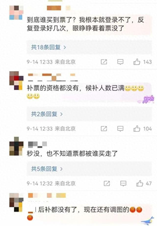 9月14日开售第一时间,车票秒光,连候补席位都已满